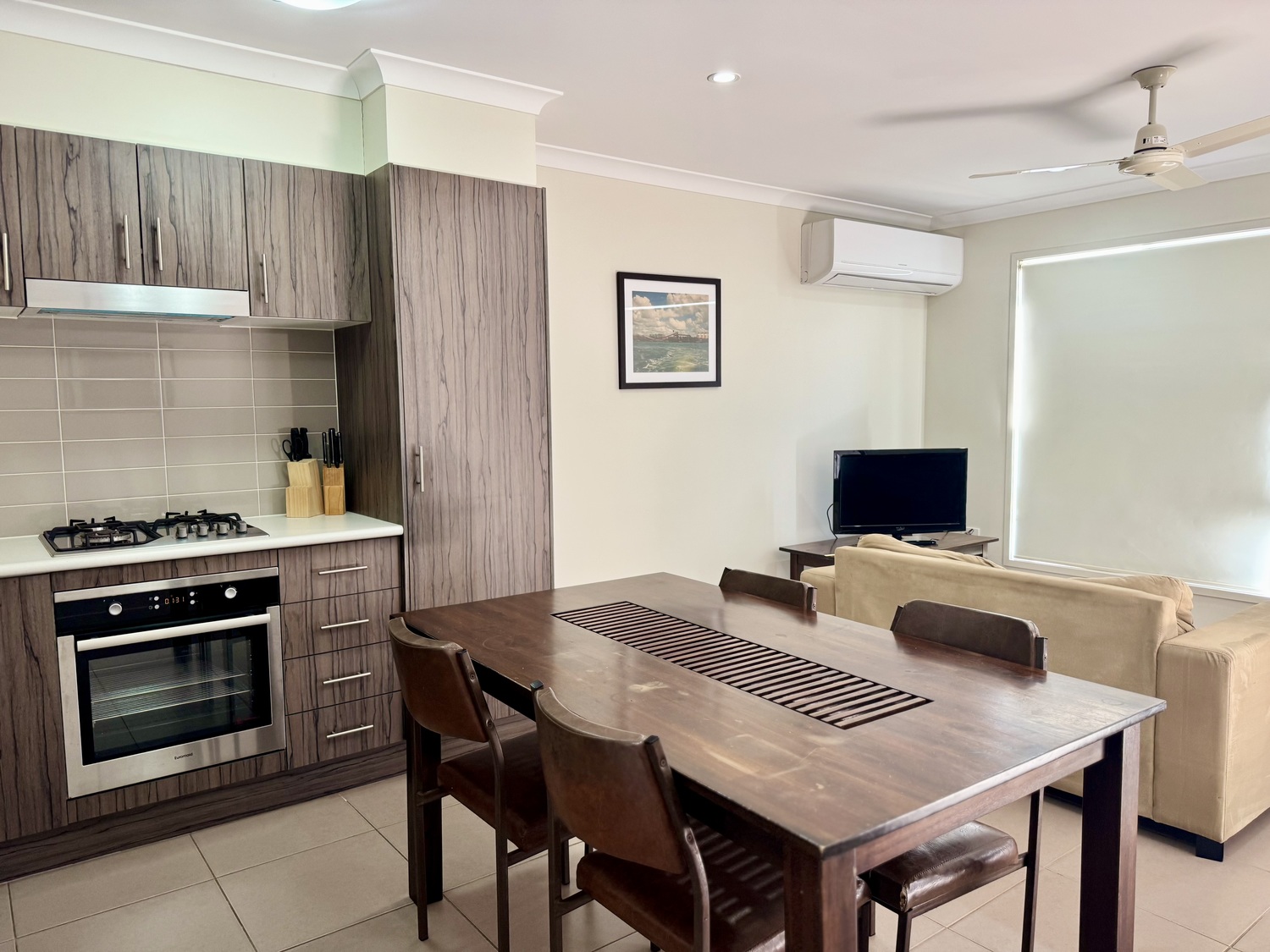 – Open-plan kitchen/dining/living with gas cooking